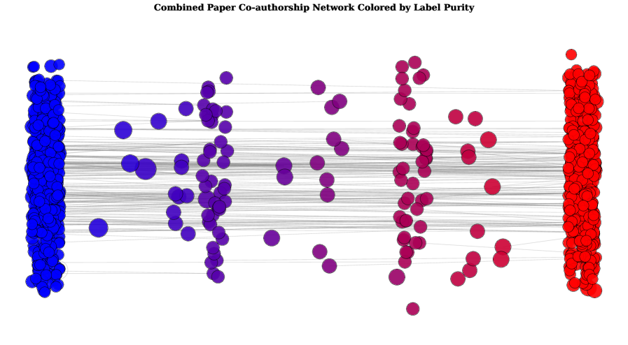 Which brings us to the bridge authors, the people Roytburg and Miller identified as the only thing connecting the two communities. The top 1% of authors by degree centrality control 58% of all shortest bridge paths. The top 5% control 88.1%. And even with those bridge authors in place, the connectivity is worse than random. After five hops through the coauthorship network, only 16.9% of safety-ethics author pairs are connected. The expected rate if collaboration were random? 21.5%. So the two communities aren’t just separated, they’re more separated than they would be if nobody were trying at all, because the clustering within each side is so strong that it basically suppresses cross-community links. The in-group gravity is eating the bridge.