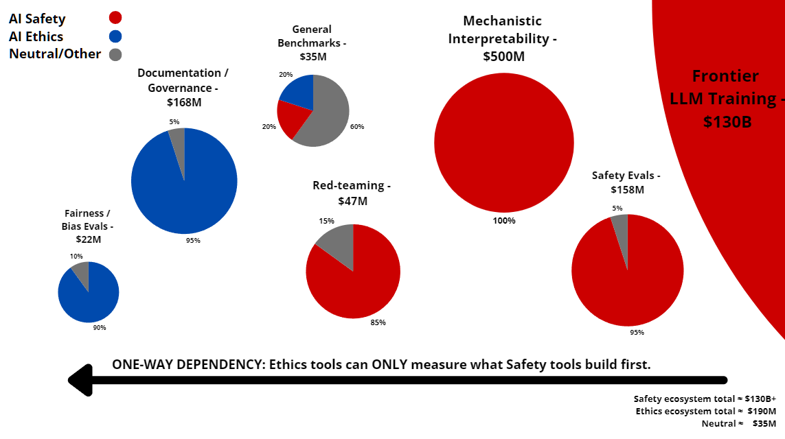 The tool gap: every interpretability method, every red-teaming framework, every frontier model evaluation benchmark was built by the safety ecosystem. The ethics community can critique outputs. It cannot examine internals. It depends entirely on the tools, access, and framing of the community it’s supposed to be holding accountable.
